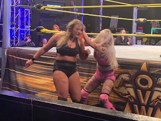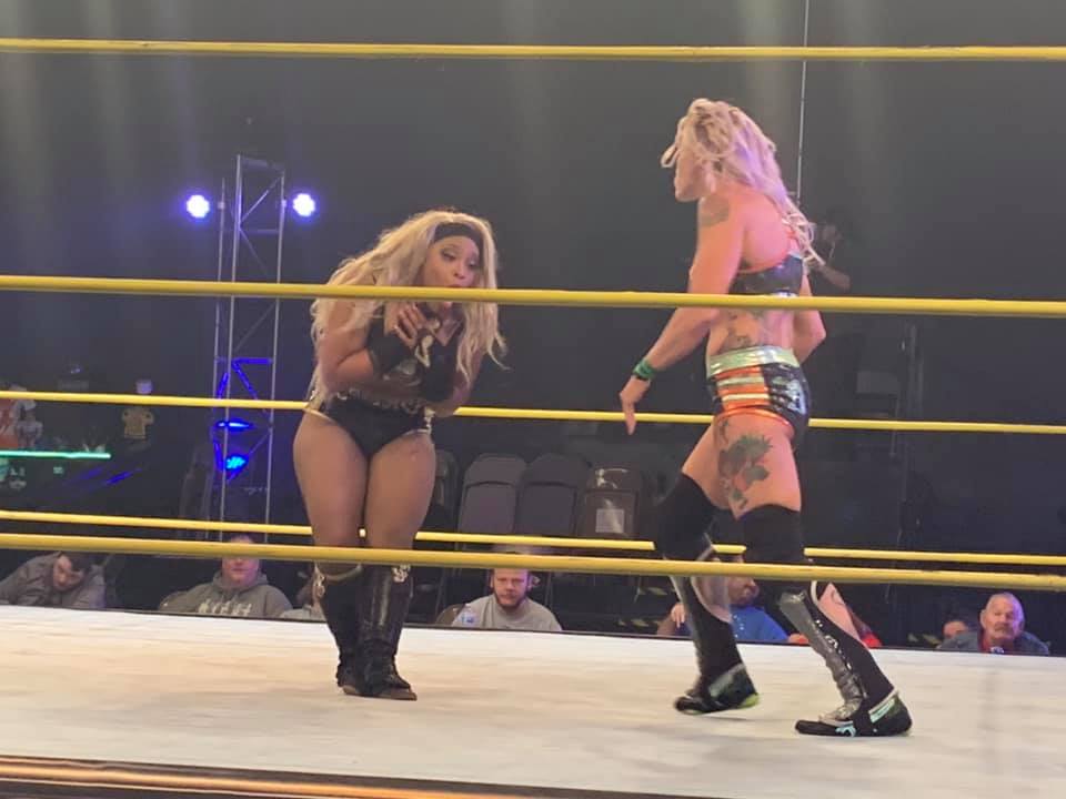 After the match, Luscious comes back out to check on Haley. Bizo comes back out and pulls her out of the ring and says she is his property. Luscious goes after him and he drops her on the ramp and heads to the back.