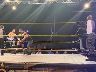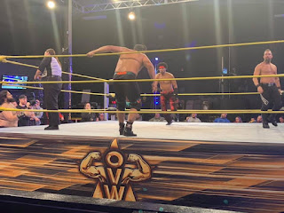 Espy tries to attack Hy, but Hy ducks and fires back. He tags Gunn. Espy throat thrusts him and tags Tom. Tom comes in, but gets knocked down and out. Gunn hits Espy with the take out the trash. Hy clotheslines him down. Tom pulls Hy down from the outside. Espy & Tom take advantage until Hy gets free and tags Gunn. Gunn comes in firing on Espy. He hits a spinning backdrop and reverse DDT to Espy for 2 as Tom breaks it up. Tom is taken out and Hy tags himself in. He hits a leg lariat to Espy and gets the 3.