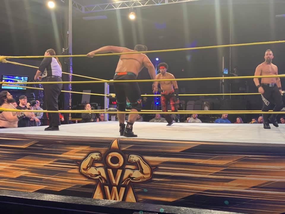 Dark Kloudz appears in the rafters and says the only reason they won is because they weren't in it. The Fanny Pack Party tell them to come down now and fight them. They are ready to cash in. Bryan Kennison gets in and says OVW management is in his ear, telling him it's official for the main event!