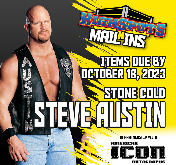 Our friends at HighspotsAuctions.com will be taking part in a private signing for WWE Hall of Famer Steve Austin, with fans able to send their items in: