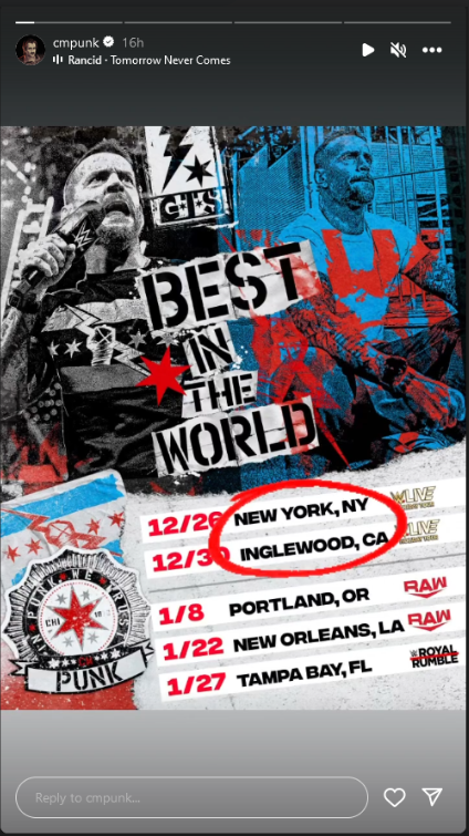 On his Instagram stories, CM Punk posted his upcoming WWE schedule: