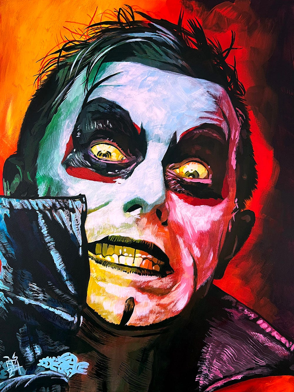 Schamberger noted, "My first ever Danhausen painting is a tribute to classic monster movie art, specifically the work of Basil Gogos. I thought it was a perfect fit. It’s an acrylic painting, using a variety of layers of paint to get such a rich combination of colors and values. To make these prints even more exciting, Danhausen himself signed them! Very signed, very evil! Get yours or be cursed."