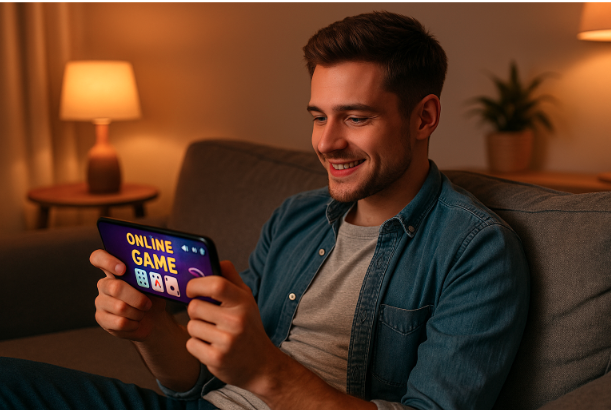 Relaxing at home while playing online games — a daily escape for millions of players worldwide.