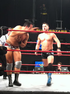 Barrett puts Kidd on the turnbuckles and he punches Kidd. Barrett sets for a superplex but Kidd punche Barrett off the turnbuckles and uses head butts. Kidd with a missile drop kick and he gets a near fall. Barrett charges at Kidd but Kidd drops down and Barrett goes over the top rope to the floor. Kidd with a running kick to the head and Barrett has trouble getting back to his feet.