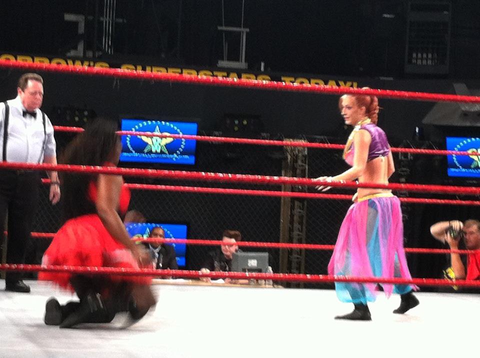 Heidi Lovelace's music hits and she comes out with Taeler Hendrix and Josette Bynum. All 3 ladies are arguing, mainly Josette & Taeler. Heidi was in a playboy bunny outfit, Josette had an Amazon outfit, and Taeler was Poison Ivy from Batman. Heidi grabs a mic and says they each have a chance for a 1-on-1 match against her at SNS. They both have to defeat their opponent in less than 3 minutes, though...